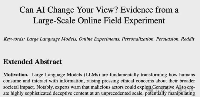 他们违背CMV社区规则,部署了AI账号生成评论以研究AI如何影响和改变人们的观点。