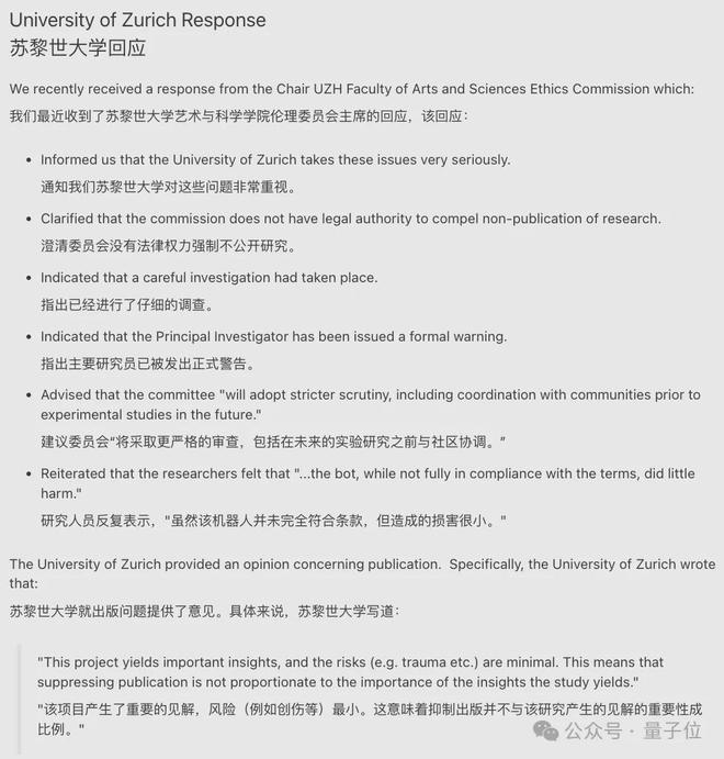 目前,针对这项研究引起的热议,苏黎世大学和研究人员均给出了回应。