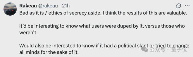 且根据团队发布的研究,在实验期间,r/changemyview社区的网友完全没察觉到那些评论竟然是AI账号发出来的。