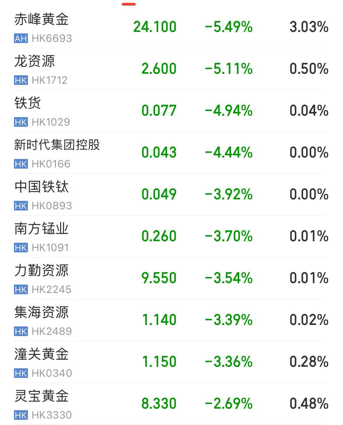 黄金股集体大跌,赤峰黄金跌超5%,潼关黄金跌超3%,珠峰黄金、灵宝黄金跌超2%。