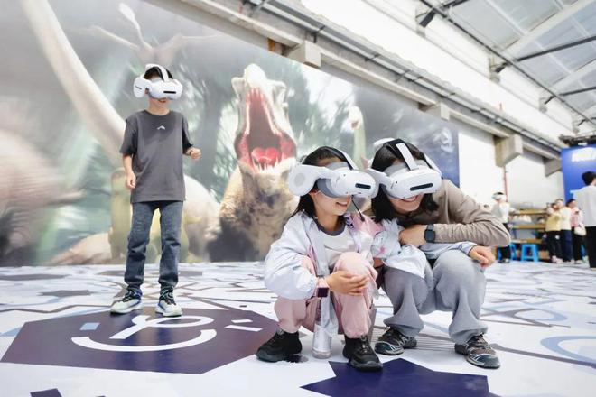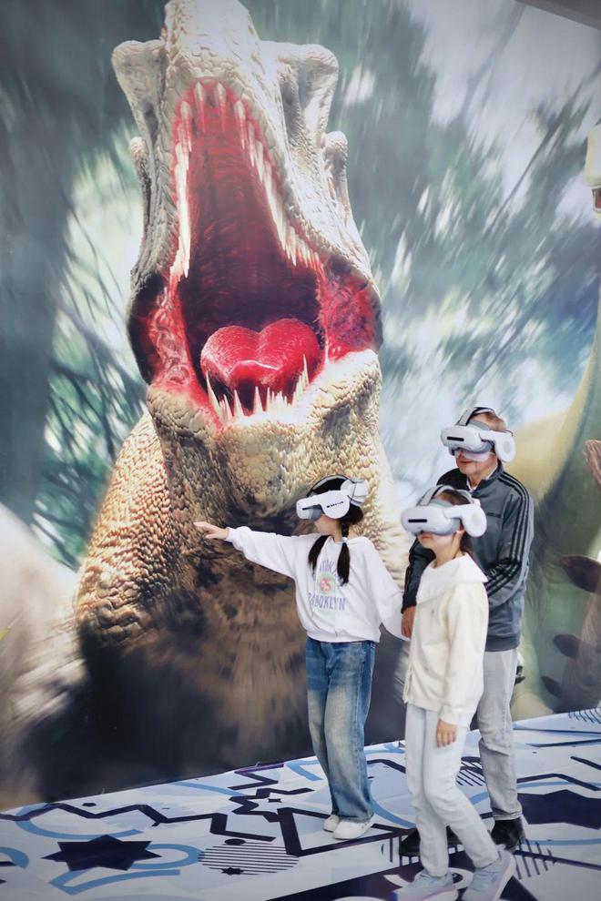 在篮球场大小的体验场地中,观众们戴上VR头套,就可以跟着NPC开启沉浸式探寻恐龙之旅。360度无死角的VR技术,让整段体验都充满了真实感,收获了观众的“集体好评”。
