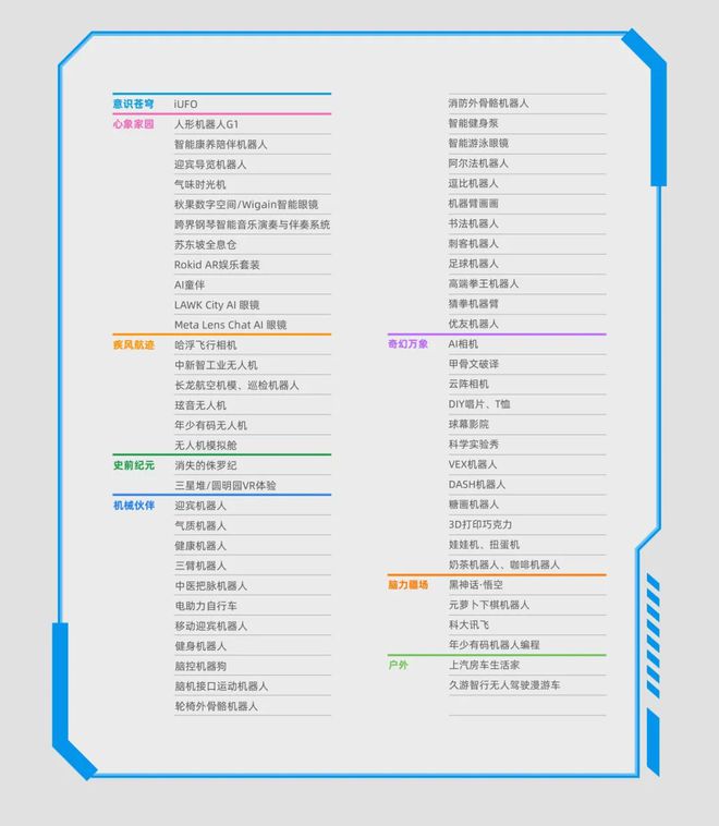 戴着智能头环就能“遛狗”的脑控机器狗、让老年人在家也能有“医”靠的孚宝智能康养陪伴机器人、将心理学教育学与AI技术深度融合打造的汤姆猫AI情感陪伴机器人、《黑神话:悟空》天命人1:1半身像等。