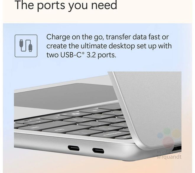 从微软海报来看,这款机型在播放本地视频时续航时间可达 23 小时,不配电源适配器销售,但可通过USB-C实现 27W 功率的 PD 快充。