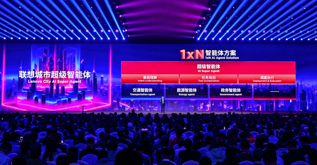 当AI技术从个人与企业走向城市,联想提出“1×N城市超级智能体”架构——1个城市核心中枢,协同多个领域智能体,核心中枢负责意图理解、任务规划、调度执行,并通过宏观层面完成计算与资源调度,实现城市治理并提供社会服务,从而形成“全局统筹+专业执行”的协作体系。