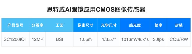 据介绍,产品基于思特威先进的 SmartClarity-3 技术平台打造,搭载了思特威 SFCPixel 专利技术,拥有小尺寸、低功耗、高感度、低噪声等性能优势,可满足 AI 眼镜轻便高画质的综合影像能力诉求。