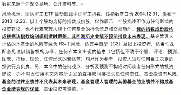 国内外需求共振,国防军工行业有望迎来新一轮高景气周期。一键投资国防军工,认准【代码里有“八一”】的国防军工ETF(512810)!被动跟踪中证军工指数,兼顾新质战斗力+传统军工装备,融资融券+互联互通标的。