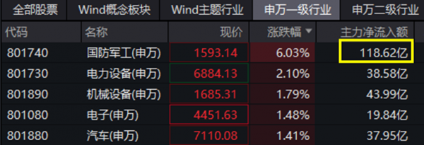 资金面上,截至发稿,国防军工行业主力净流入额超118亿元!在31个申万一级行业中高居断层第一!个股方面,中航成飞、中国船舶、中航沈飞等主力净流入居前。