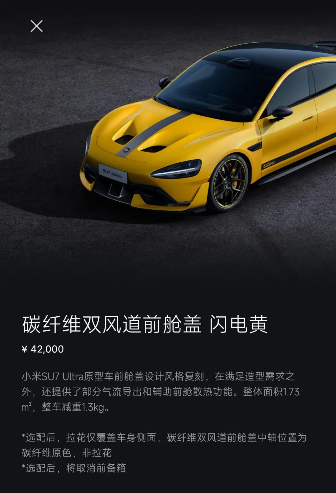 车主拆解发现,标价4.2万元的碳纤维前舱盖仅是在普通结构上挖孔加装塑料支架,既无导流槽设计,也未连接散热系统。鼓风机测试显示,其宣称的“空气动力学效能”也不甚理想。这与雷军直播中“内部结构全改”的承诺形成鲜明对比,被舆论讽刺为“4.2万元买了个装饰贴纸”。