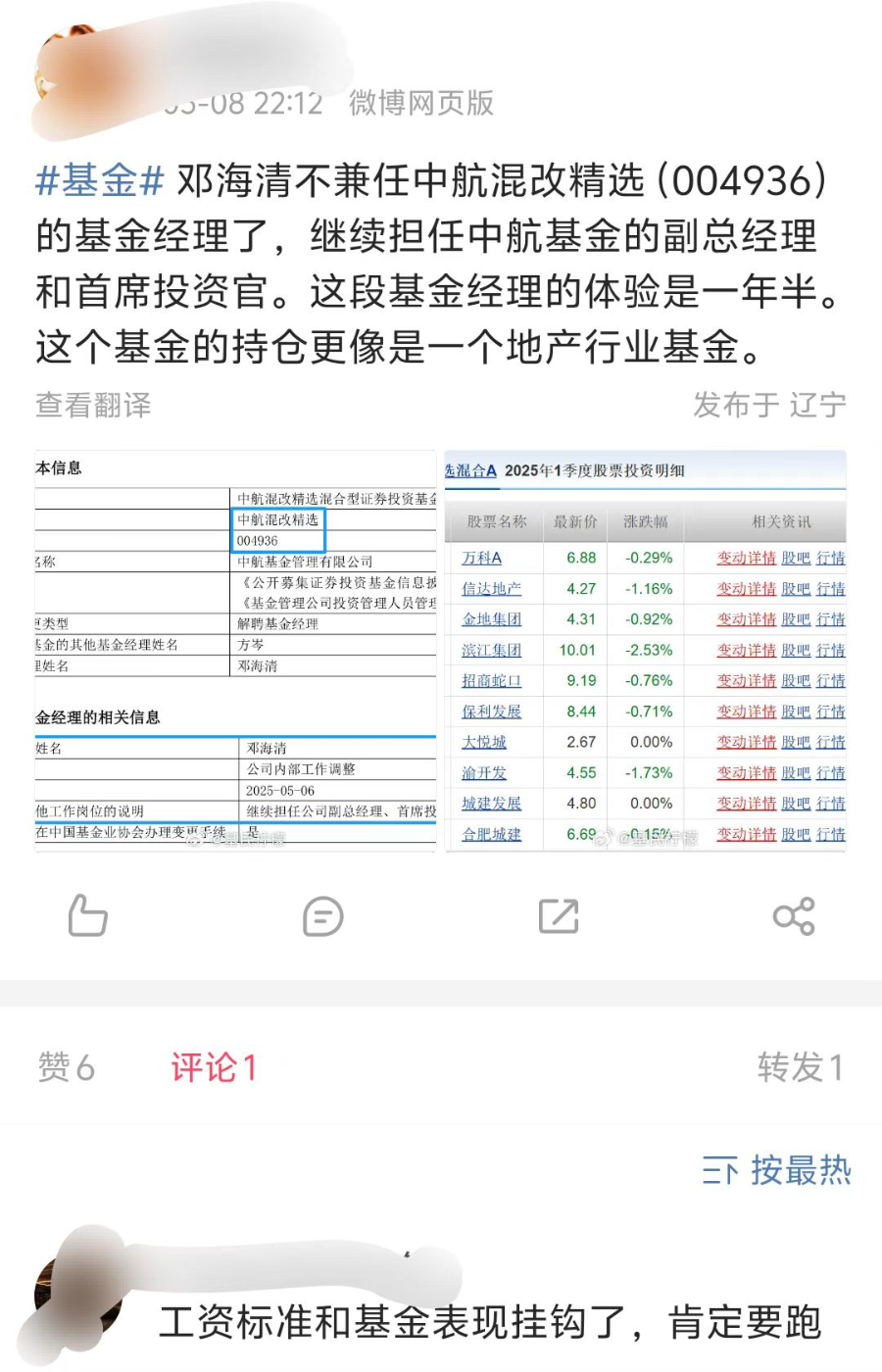 此外,在他任职期内,该基金因重仓地产行业饱受争议,被投资者戏称为 “地产行业基金”,未体现出“混改”主题。