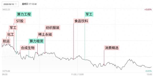 财联社5月15日讯,今日50股涨停,18股炸板,封板率为73%,成飞集成7连板,迎丰股份、苏州龙杰5连板,宁波海运、宁波远洋、南京港、连云港、尤夫股份、盛泰集团、集泰股份3连板,渝三峡A12天8板,交大昂立5天4板,京运通8天4板,北交所芭薇股份30CM首板。市场全天震荡调整,创业板指领跌。沪深两市全天成交额1.15万亿,较上个交易日缩量1643亿。板块方面,合成生物、食品、ST板块、港口等板块涨幅居前,软件开发、跨境支付、算力、鸿蒙概念等板块跌幅居前。截至收盘,沪指跌0.68%,深成指跌1.62%,创业板指跌1.91%。