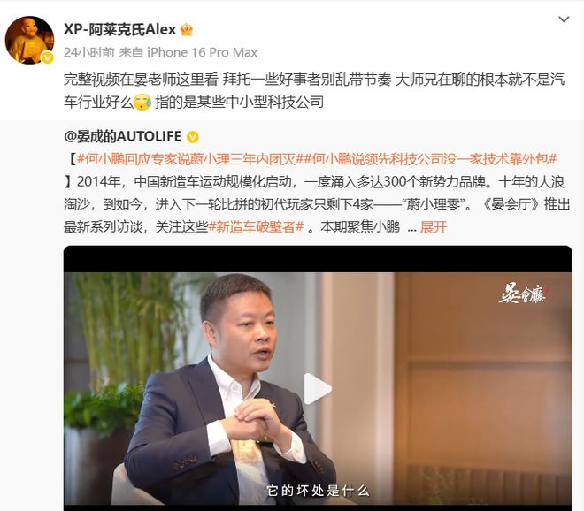 此言论引发了网友的广泛讨论,许多人认为何小鹏是在暗指某车企,因为某车企在人才招聘上一直以高薪著称。不过,小鹏汽车品牌公关负责人随后在微博上澄清,何小鹏讨论的并非汽车行业,而是某些中小型科技公司的行为。公关负责人还表示:“放眼望去,汽车行业哪里有三倍机会。”