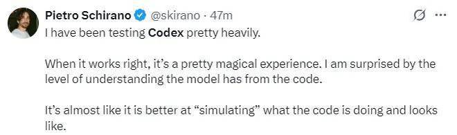 还有人现身说法,在经过对 Codex 大量测试后发现,当它正常运作时,几乎更擅长「模拟」代码正在做什么以及看起来是什么样子。