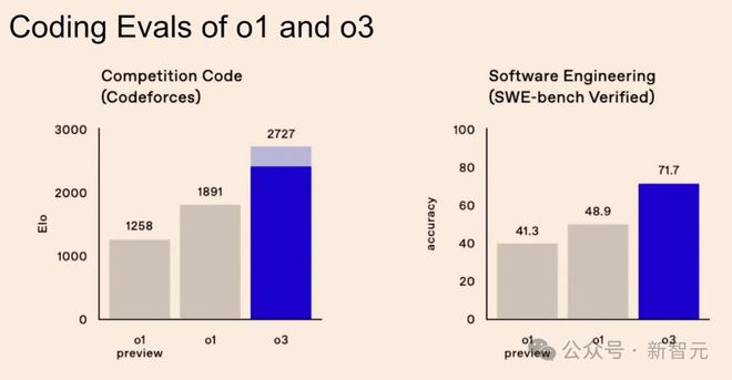 而在编码任务基准测试Swebench Verifie,o3得分达到了72%。