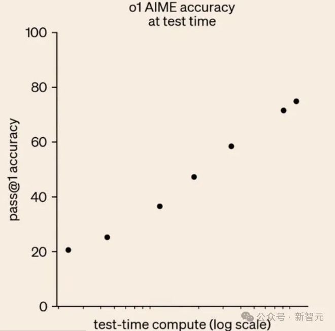 图中的纵轴表示准确率,也就是模型在「一次答对」的比例(叫做「pass@1」);横轴表示模型在回答问题时所消耗的推理计算量(也就是「思考」时间和资源的多少)。