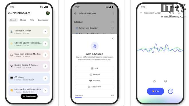 此次发布的移动应用也支持“音频概览”功能,该功能可基于用户提供的资料,生成由 NotebookLM AI 制作的播客内容。用户可以在后台播放这些音频,并且支持离线收听,方便在通勤、运动等场景中使用。