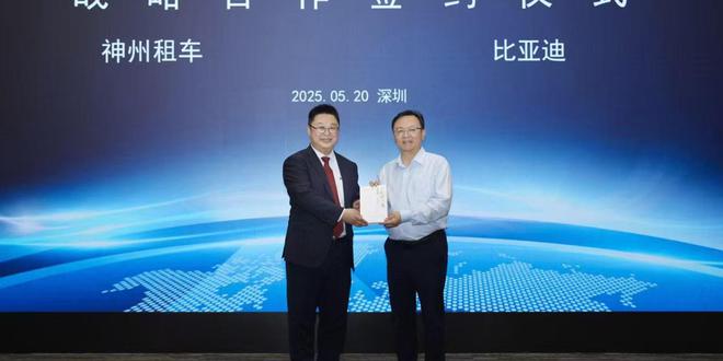 5月20日,比亚迪与神州租车在深圳比亚迪全球总部正式签署战略合作协议。比亚迪集团董事长兼总裁王传福、神州租车董事长于洪飞携双方管理团队共同出席签约仪式,宣布就2025年暑期车辆采购计划达成深度合作意向,携手推动绿色出行与汽车租赁市场的可持续发展。