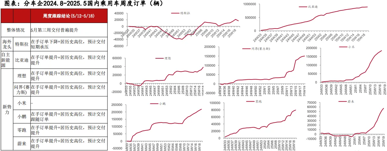 更为值得一提的是,据中泰证券跟踪数据显示,自2月节后复苏,3月各车企周交付明显环比改善;预计5月比亚迪/长城/理想/零跑等车企还将同比提升明显。