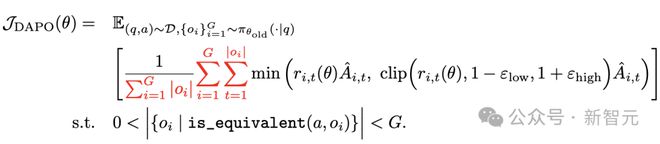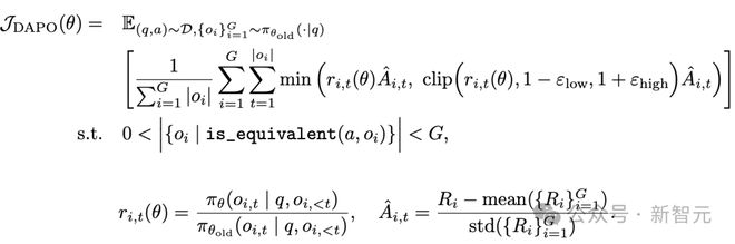 DAPO为每个与答案a配对的问题q采样一组输,并通过以下目标函数优化策略:
