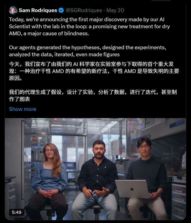 在这个过程中,团队还推出了首个全自动化的多智能体系统——Robin。