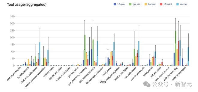 为了更详细地分析模型在模拟天数上的表现,研究人员主要分析了GPT-4o、Claude 3.5 Sonnet、o3-mini 和 Gemini 1.5 Pro的表现。