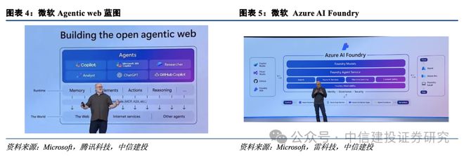 5月19日微软Build 2025召开,CEO纳德拉就智能代理(Agentic AI)时代进行主题演讲。具体而言,微软希望构建Agent网络,目标的实现智能体积极主动地发起任务、独立决策、与其他人工智能系统协调,并在极少的人类监督下完成复杂的工作流程。就当前布局而言,Azure AI Foundry作为模型的云端训练中心,开发者可以自由组合模型、功能、工具调度等AI能力,构建所需的AI应用;Windows AI Foundry支持AI模型本地部署在设备侧,无需联网即可运行AI模型、工具与智能体;而Copilot Studio 平台则使所有用户都能构建属于自己的智能体,并支持多智能体协同;此外,微软还宣布加入MCP指导委员会,并推出新开源项目NLWeb,定位智能体网络时代的HTML协议,旨在简化网站自然语言交互界面开发,轻松将任意网站转化为具备 AI 功能的智能应用平台。