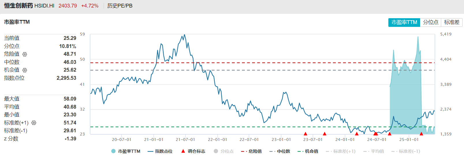 再来对比一下两个指数的估值水平,Wind数据显示,即使经过了近期的上涨,目前恒生创新药指数的市盈率TTM依然在历史10%左右的分位,属于比较低的水平。