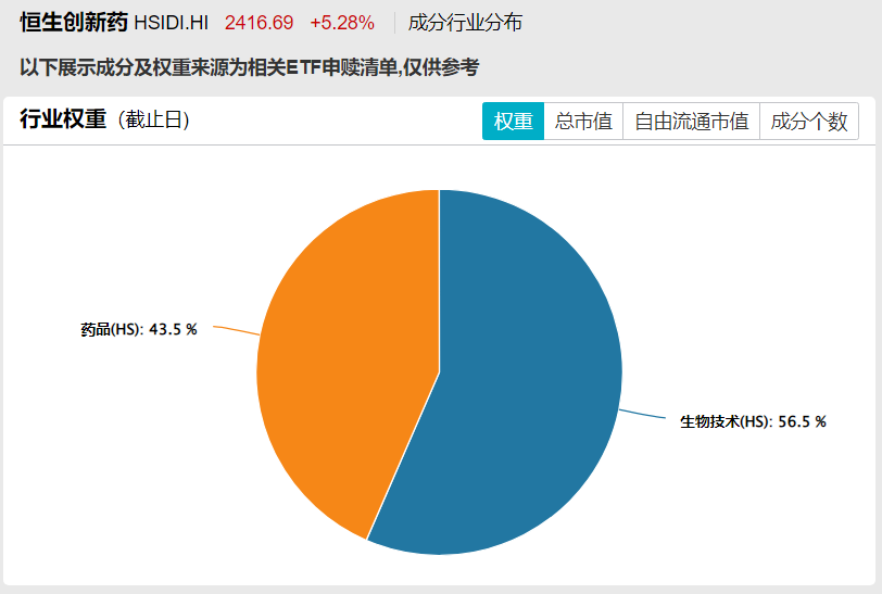 恒生创新药指数:前十大权重累计占比71.47%,其中信达生物、康方生物、药明生物、中国生物制药、百济神州的权重占比超过8%。