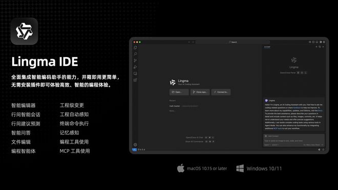 这款 IDE 与最新的千问 3 大模型进行了深度适配,全面集成了通义灵码的各类插件功能,同时还带来了编程智能体、行间建议预测、行间会话等一整套 AI 辅助编码能力。