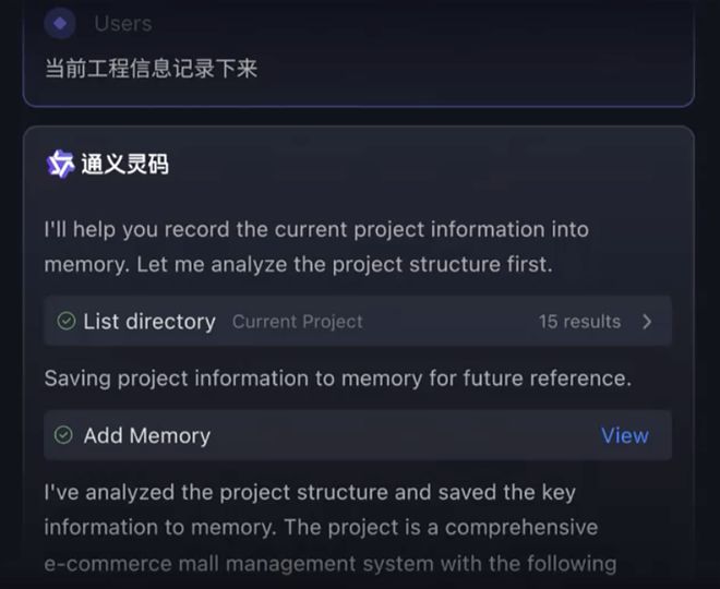 通常情况下,通义灵码会主动记忆开发者与通义灵码的对话信息,逐步形成对开发者个人编码习惯、工程相关的记忆,开发者无需主动触发。