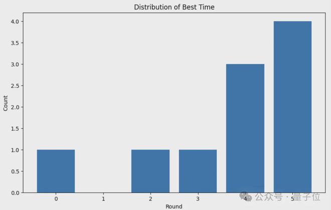 其中大多数最佳结果出现在后续轮次(总共5轮),并且主要是第4轮或第5轮。