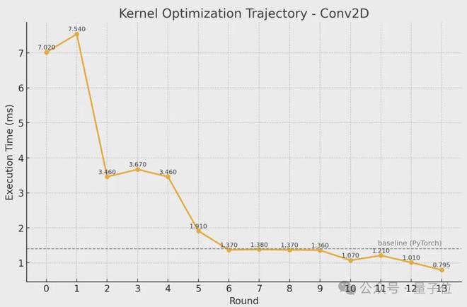 团队使用OpenAI o3和Gemini 2.5 Pro挑战KernelBench 1级中的10个问题,运行多轮后,最佳内核开始出现。