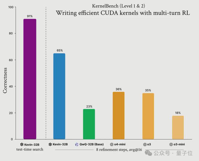 它基于QwQ-32B在KernelBench数据集上使用GRPO,实现了多轮强化学习,性能优于o3、o4-mini。