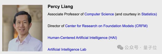 Percy Liang是斯坦福大学计算机科学副教授兼统计学助理教授,目前担任斯坦福基础模型研究中心主任。