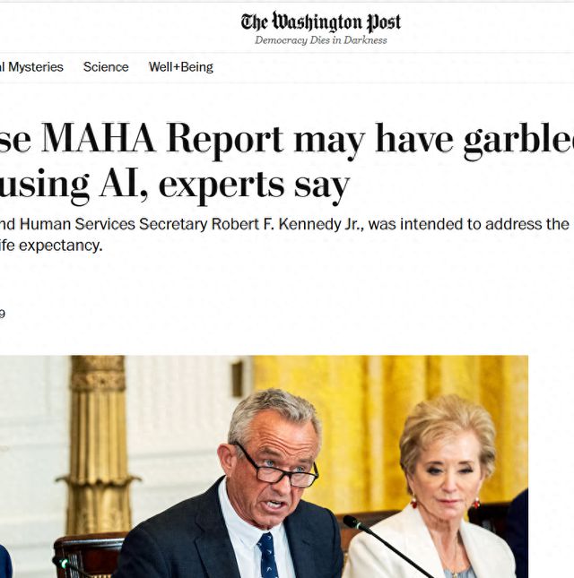 【环球网科技综合报道】5月31日,据华盛顿邮报报道,白宫一份旨在解决美国人预期寿命下降原因的全面报告“MAHA报告”日前陷入AI引用争议。专家指出,该报告中部分支撑科学的引用似乎是通过人工智能生成的,导致出现了混乱的科学参考文献和虚构的研究。