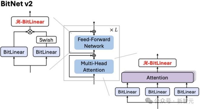 H-BitLinear可以取代注意力机制输出投影和FFN下投影的标准线性层。