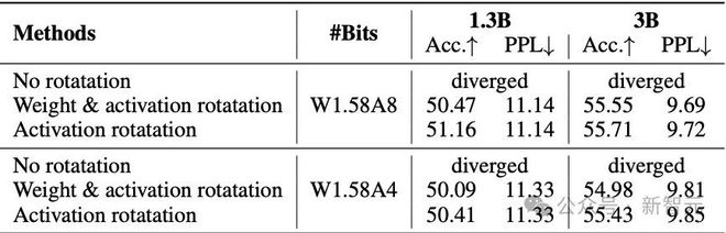 另外,在Hadamard变换对不同模型尺寸(1.3B和3B)影响的实验(见表5)中,研究者发现: