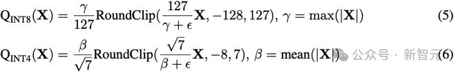 对于8位激活(INT8)和4位激活(INT4)量化策略,分别采用下列策略:
