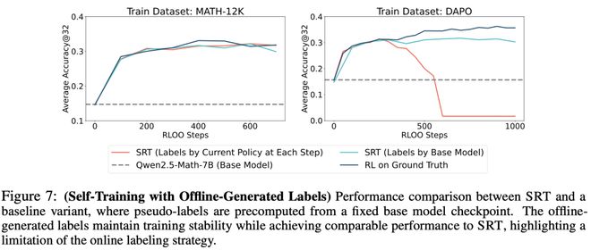 图7显示,使用此类离线标记不仅能显著提升训练稳定性,还能达到与SRT相当的模型性能。