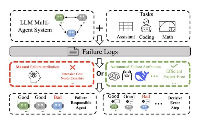 为了解决这个「AI版罗生门」,宾夕法尼亚州立大学与杜克大学联合Google DeepMind等机构的研究者们首次提出了:自动化失败归因(Automated Failure Attribution)——让AI自己举手:我错了!