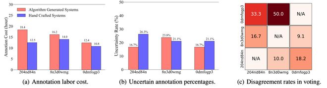 图(c)则可视化了不同注释者在互相投票判断彼此「不确定」数据时的分歧率。