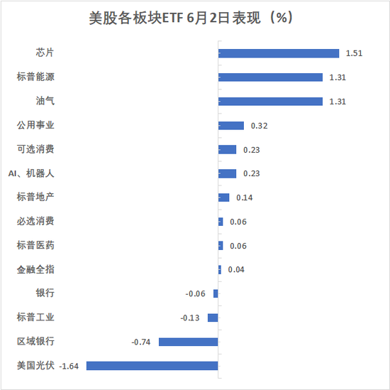 美股ETF:生物科技指数ETF收涨1.63%,半导体ETF涨1.48%,能源业ETF涨1.31%,全球科技股指数ETF涨0.9%,银行业ETF则收跌0.68%,区域银行ETF跌0.74%。