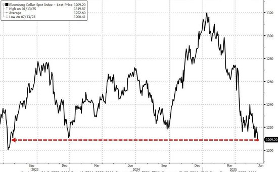 美股早盘,美国5月ISM制造业指数显示制造业活动连续三个月处于萎缩区间,衡量进口的分项指数创十六年新低,体现关税冲击。数据公布后,三大美股指刷新日低,美债收益率回吐盘中升幅,美元指数跌幅扩大、逼近六周前所创的三年来最低水平。