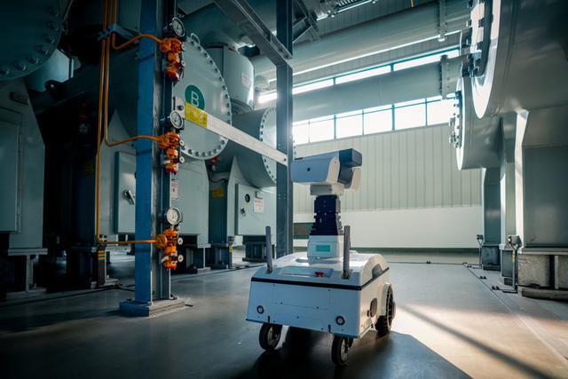 AI智能巡检机器人在500千伏三林变电站自主开展GIS设备巡视。