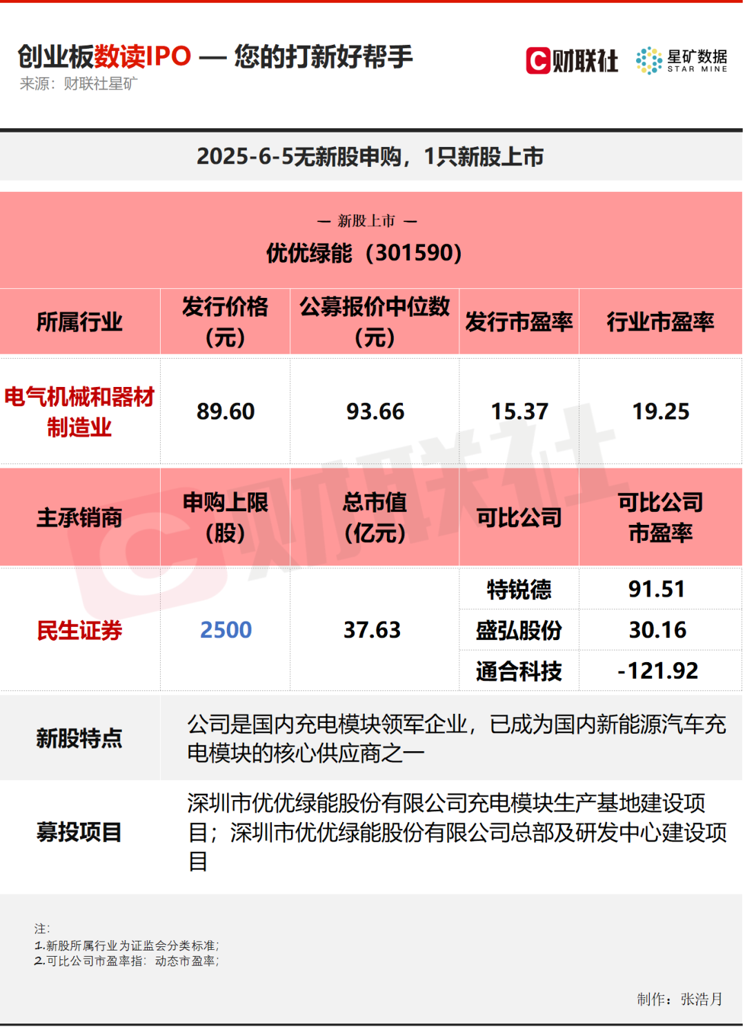 创业板明日无新股申购;有1只新股上市,为优优绿能。