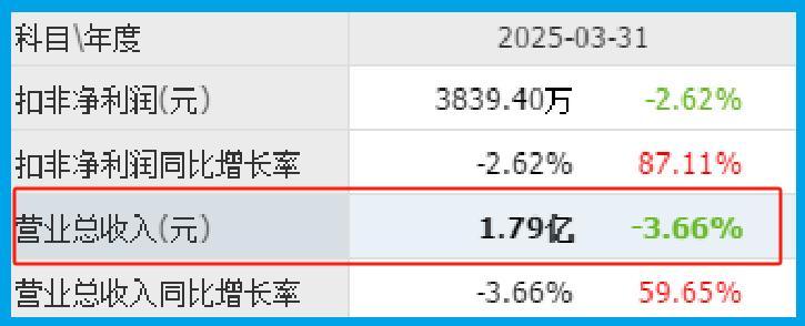 2025年第一季度,公司的营业总收入为1.79亿元,同比下降了4%。