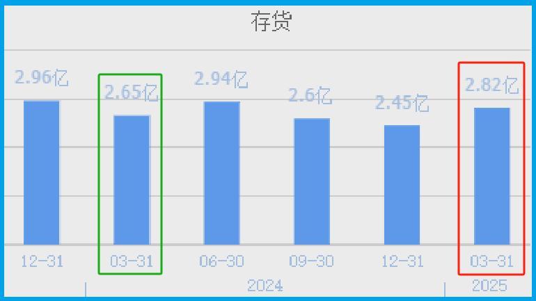 2024年第一季度,公司的存货为2.65亿元。到了2025年第一季度,这家企业的存货就达到了2.82亿元,同比增长了6%。