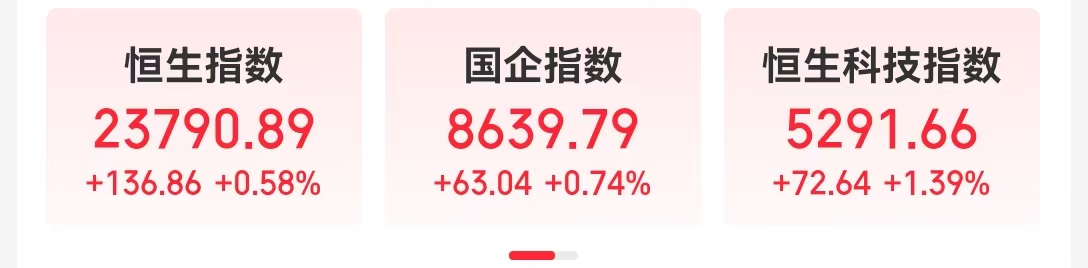 6月5日,港股三大指数上涨,恒生指数涨幅超1%。