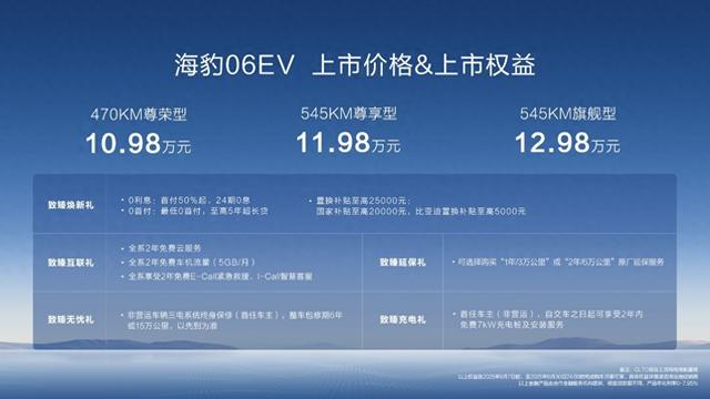6月7日,比亚迪海洋网潮美质选轿跑海豹06EV于重庆车展上市。新车共推出3款配置,售价10.98万-12.98万元。并推出购车享致臻焕新礼、致臻互联礼、致臻无忧礼、致臻延保礼、致臻充电礼多重礼遇。凭借家用轿跑形象,海豹06EV在颜值、驾乘、品质、安全方面全面领先同级,全方位满足年轻家庭用户多元用车需求。