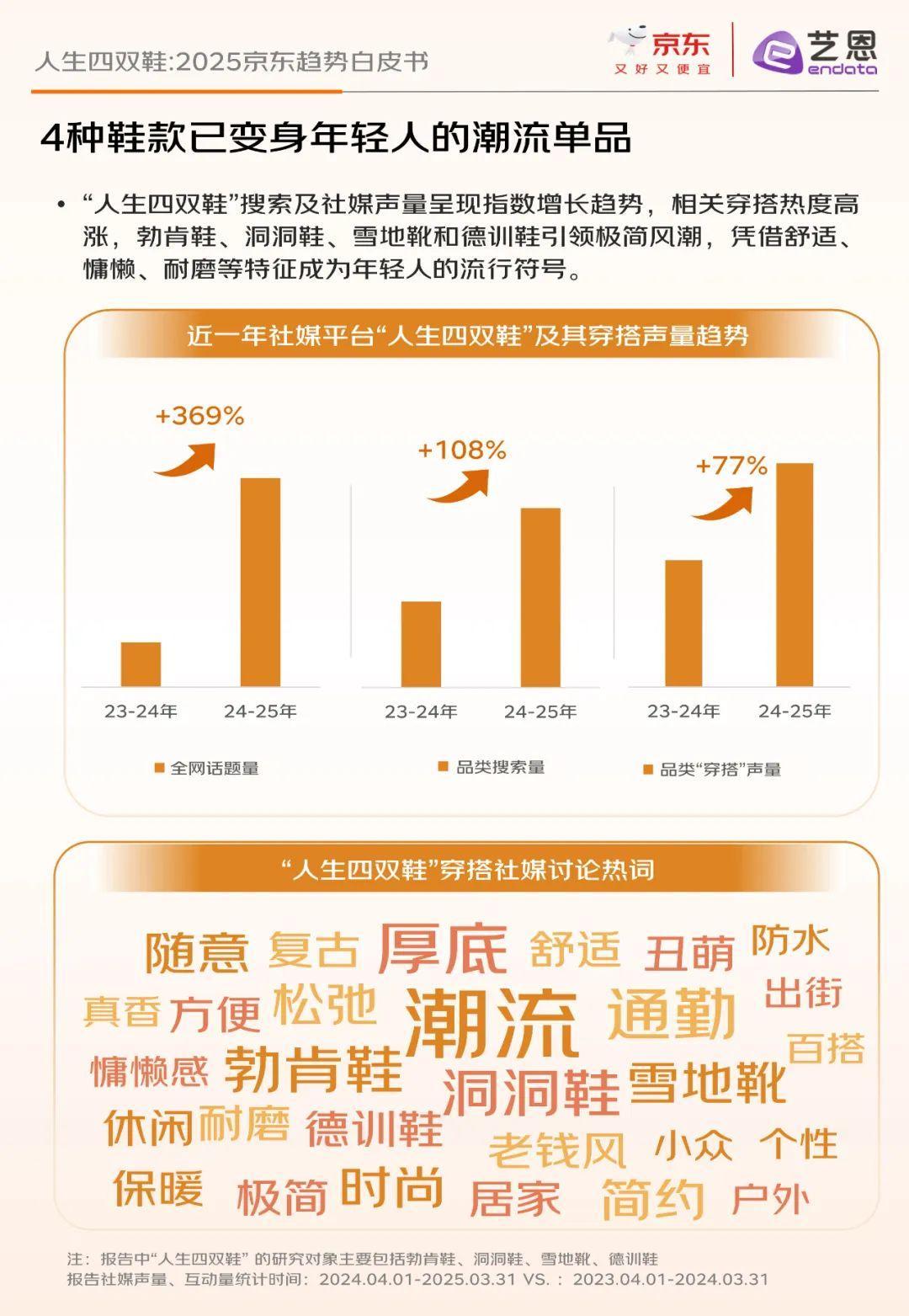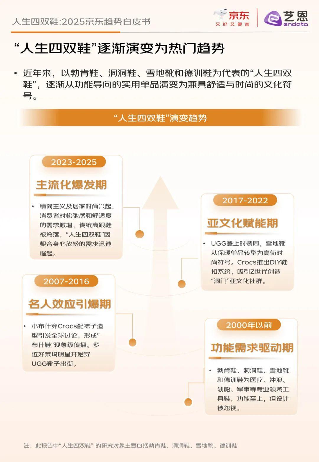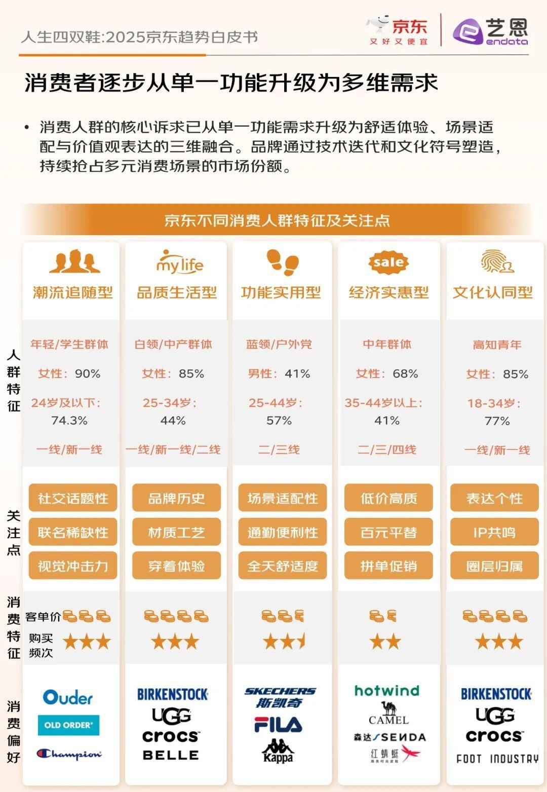 报告还揭示了三大流行趋势:一是一鞋多穿,满足消费者通勤、休闲、运动等多场景需求;二是审“丑”美学,通过鞋花、绑带等装饰元素展现个性;三是四季搭子,去季节化消费趋势明显,一双鞋可穿四季。此外,消费者需求从单一功能升级为舒适体验、场景适配与价值观表达的三维融合,品牌通过技术迭代和文化符号塑造抢占市场份额。