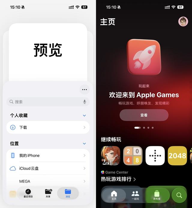本次的iOS 26还加入了预览与Games两个App,前者出现在iOS上显得有些意味不明,毕竟iOS一直在弱化文件管理的重要性;而后者则是若干年前Game Center的复活,可以简单理解为苹果版的Steam。